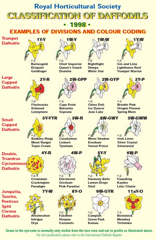 RHS Daffodil Classification - Examples of Divisions and Colour Coding